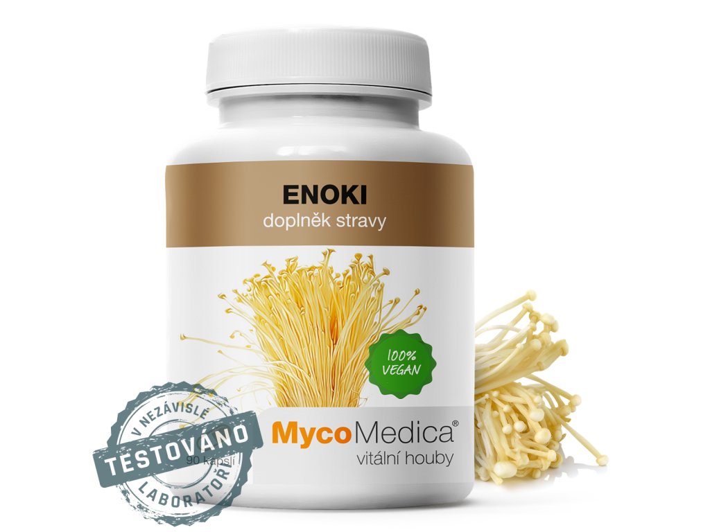 Enoki (penízovka sametonohá, Flammulina velutipes) je velmi známá jedlá houba využívaná po celém světě. V historii byla doceněna starými Egypťany a Číňany, kteří ji považovali za houbu nesmrtelnosti. Obsahuje mnoho bioaktivních složek, díky kterým ji v Číně považují za houbu prodlužující život.