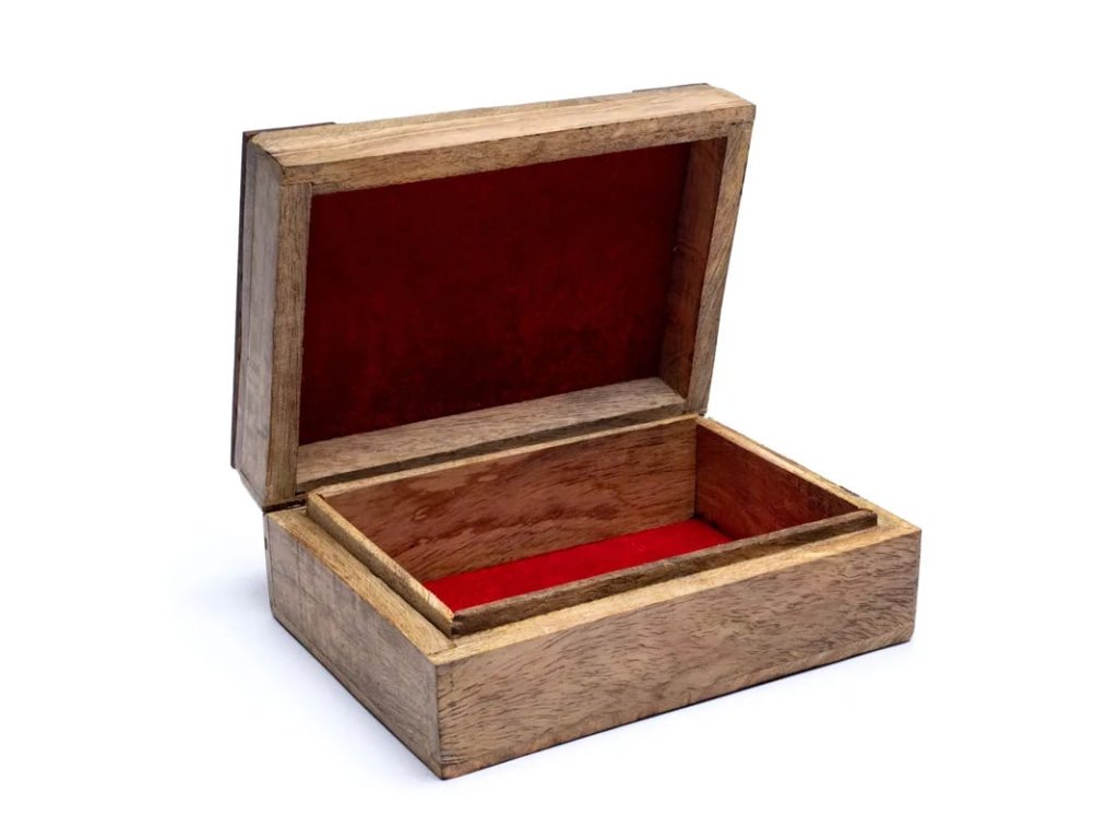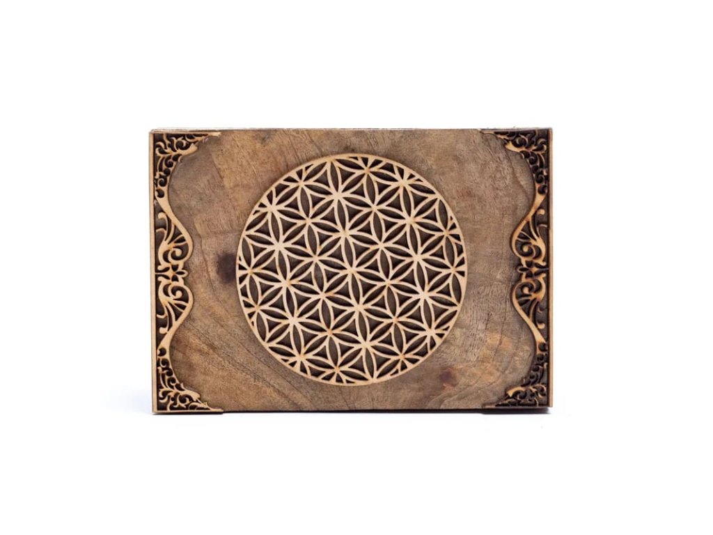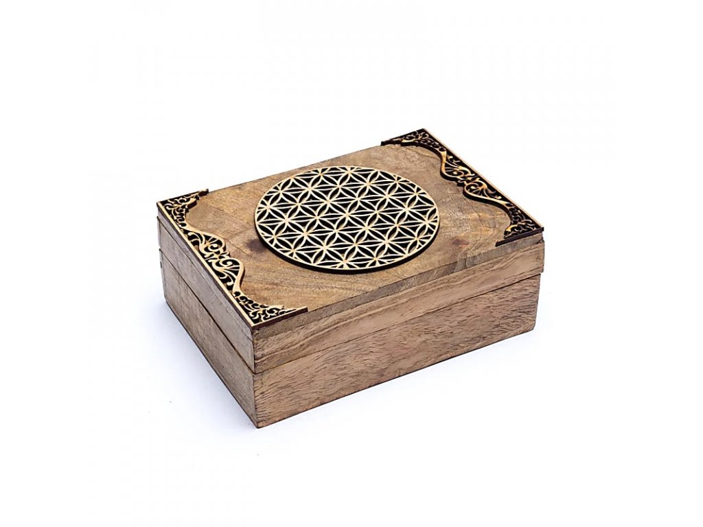 KRABIČKA NA TAROTY KVĚT ŽIVOTA MANGOVÉ DŘEVO 18x12x7 CM