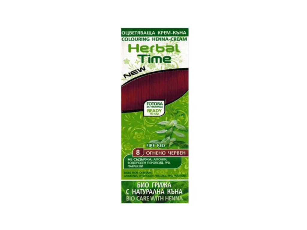 Jemně barví a vyživuje vlasy výtažkem z přírodní bezbarvé henny. Kombinace moderních technologií a starodávné tradice barvení s přírodní hennou zaručuje perfektní výsledek v harmonii s přírodou. Výtažek z kopřivy a vitamíny společně s olivovým olejem dodají vašim vlasům jedinečný lesk, pevnost a usnadňují rozčesávání. Barvící krémová henna Herbal Time představuje inovační produkt založený na přírodním složení se střední trvalostí barvení, je vhodná pro: celkové barvení vlasů, udržování barvy mezi dvěma barveními s oxidační barvou na vlasy, melírování. Speciální složení zaručuje až 70-80% krytí šedých vlasů. Barva obvykle vydrží 3-6 umytí. Barvící krémová henna Herbal Time je moderní výrobek, který má ve srovnání s tradičními oxidačními barvami na vlasy a práškovými hennami následující výhody: hotový a snadný.