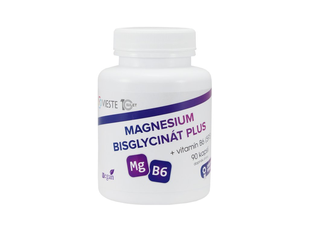 Vieste Magnesium bisglycinát je obohacený o vitamín B6 ve formě P5P - pyridoxal 5 fosfátu. Je to aktivní a velmi vzácná forma vitamínu B6 s vysokou biodostupností. Vitamín B6 přispívá k normální syntéze cysteinu, normálnímu energetickému metabolismu, činnosti nervové soustavy, metabolismu bílkovin a glykogenu, tvorbě červených krvinek, funkci imunitního systému a k regulaci hormonální aktivity.