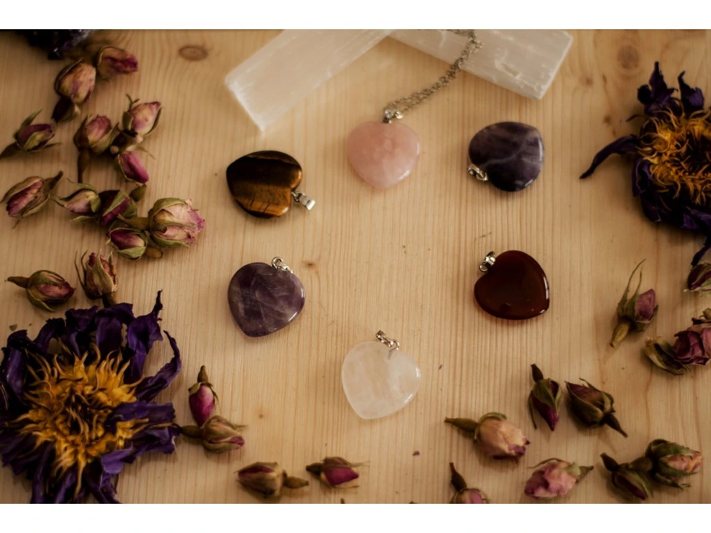 Balení obsahuje: 6 přírodních a leštěných minerálů a 1 postříbřený řetízek.