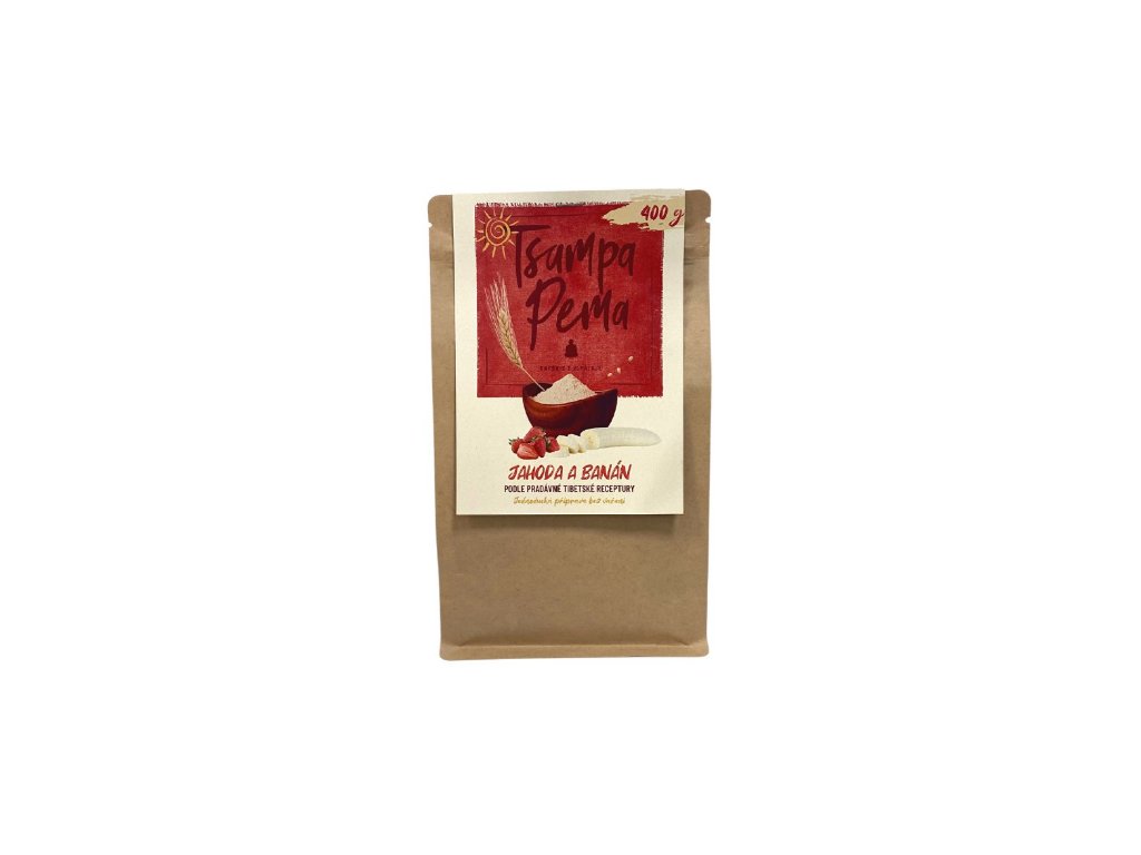 Složení: tsampa, sušený banán, lyofilizované jahody, chia semínka, bílá čokoláda (cukr, kakaové máslo, sušené mléko plnotučné, sušená syrovátka, emulgátory E22 a E476, vanilkový extrakt bourbon Madagascar)