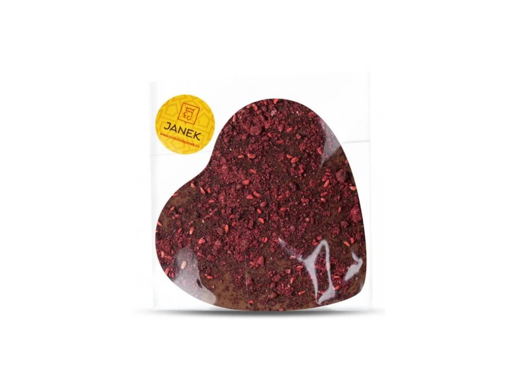 Velké mléčné čokoládové srdíčko s drcenými malinami a ostružinami 60g