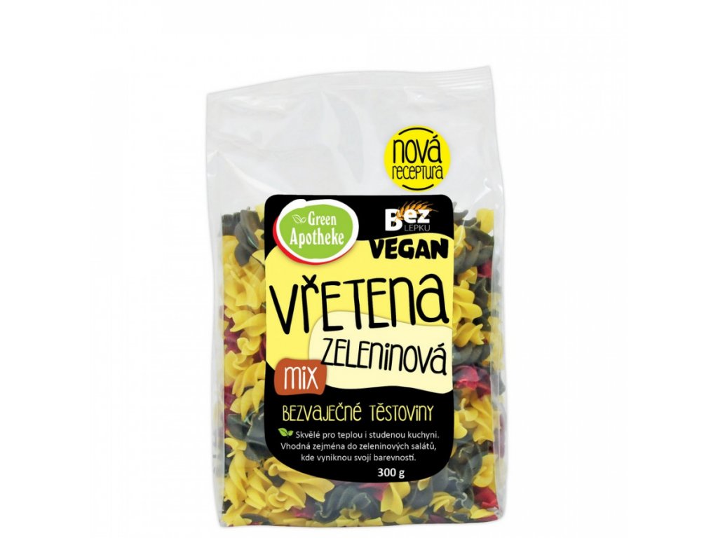 Složení: Kukuřičná mouka, zelené: sušený špenát 5 %, červené: sušená červená řepa 5 %.