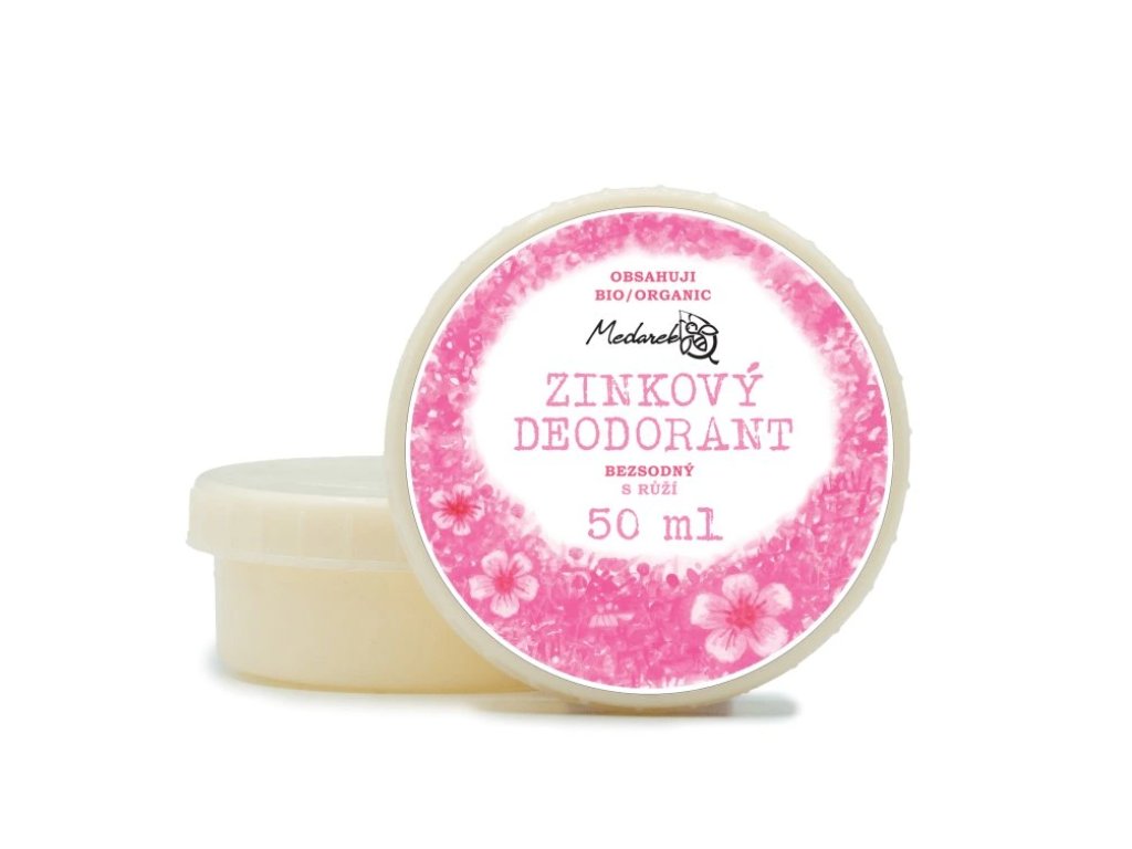 Přírodní bezsodný zinkový deodorant s vůní bílé růže vhodný pro děti od šesti let a dospělé.